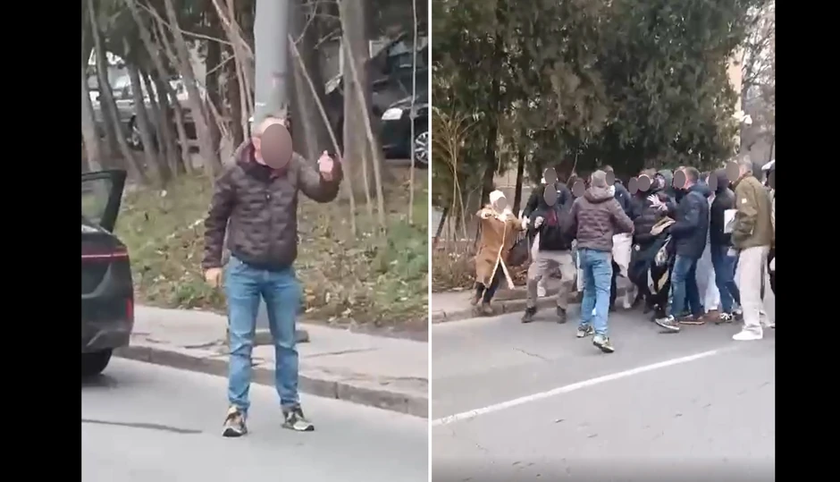 Međutim, kako se vidi na snimku koji kruži društvenim mrežama, dvojica muškaraca napustila su vozilo marke "BMW", nakon čega je jedan od njih prišao grupi učenika, koja se okupila da oda počast žrtvama nastradalim na železničkoj stanici Novi Sad, i udario jednog od njih.