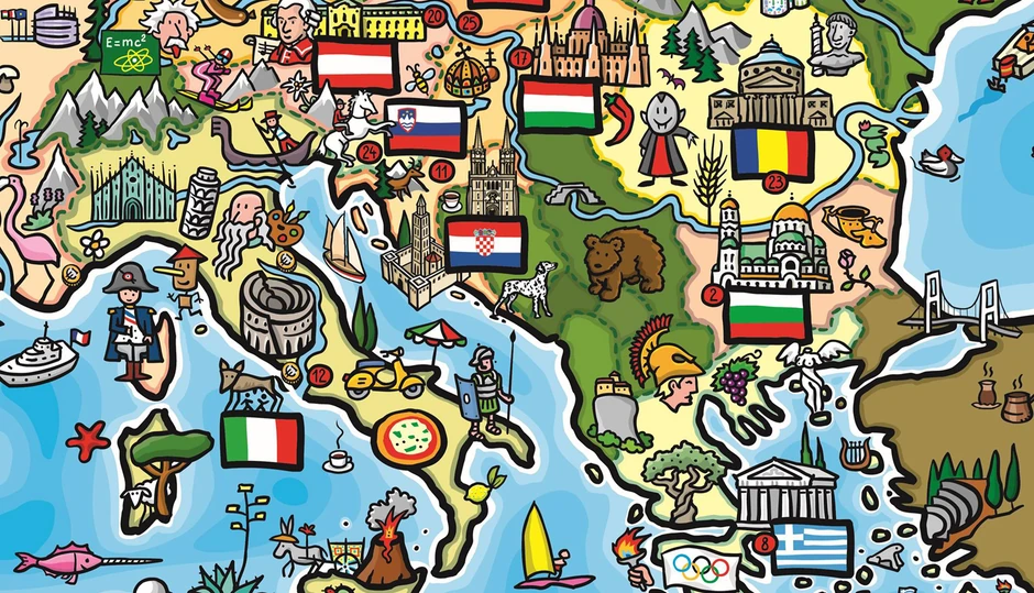 Evropska komisija (EK) je na svojoj zvaničnoj Fejsbuk stranici obeležila Međunarodni dan mladih objavom mape Evrope, na kojoj su prikazane određene specifičnosti država. Mapa je namenjena deci i mladima, sa idejom da na slikovit i zanimljiv način nauče nešto više o evropskim državama.