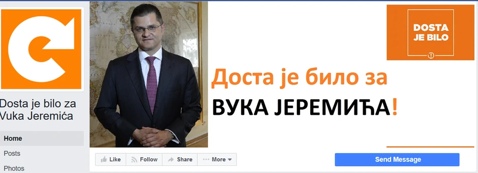 "Dosta je bilo za Vuka Jeremića" - tek je napravljena Fejsbuk stranica sa sve prepoznatljivim bojama i logoom "Dosta je bilo", ali iza koje, kako tvrde u DJB, ne stoji ovaj pokret.
