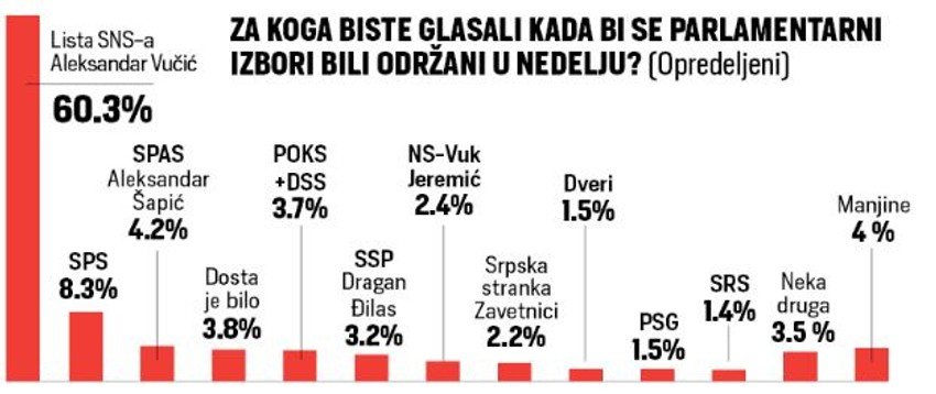 U ovom trenutku, najjača stranka opozicije je Dosta je bilo sa podrškom od 3,8 odsto.