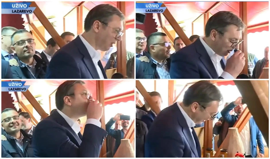 - Ali ne nudite čašicu, taman kad sam heo da probam - rekao je Vučić prilikom posete pčelarske izložbe u ovom mestu.