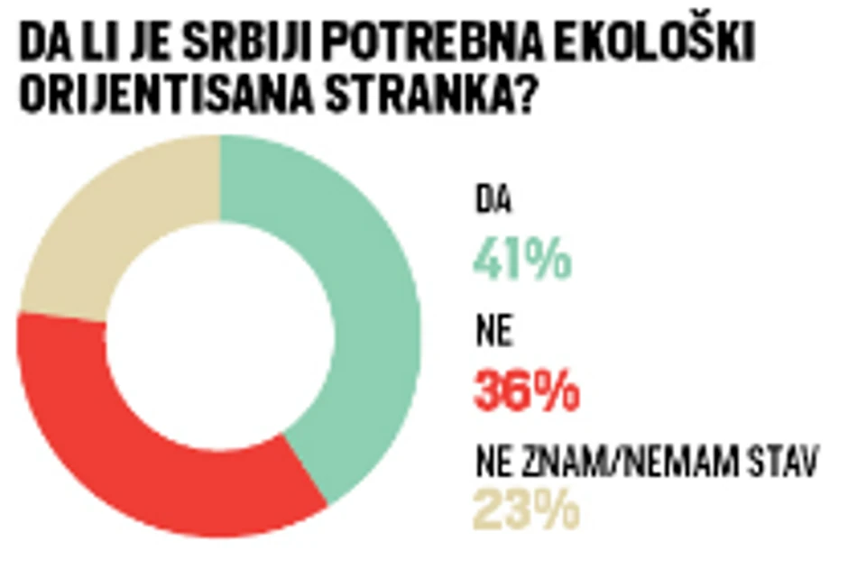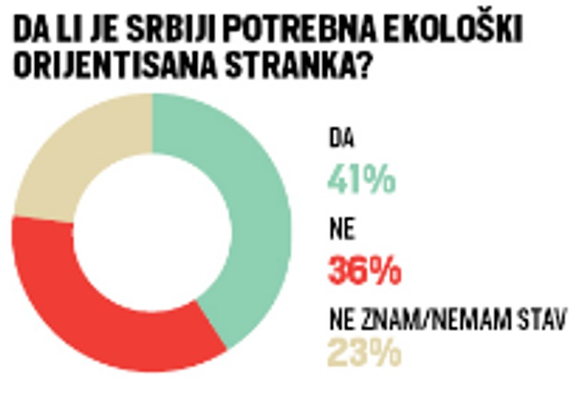Na pitanje da li Srbiji treba ekološka stranka, čak 41% odgovara potvrdno.