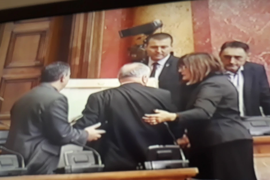 Ona je pozvala pripadnike obezbeđenje da uzmu sliku od Ševarlića, a potom došla do poslanika, posle čega je on napustio salu.