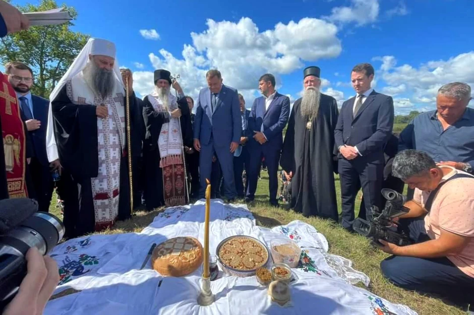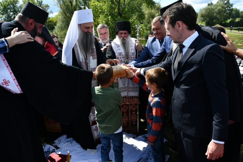 Oni su povodom praznika Svetih Novomučenika Jasenovačkih najpre u jasenovačkom Manastiru prisustvovali Svetoj arhijerejskoj Liturgiji koju je služio Patrijarh srpski Porfirije, uz sasluženje Episkopa pakračko-slavonskog Jovana i brojnih episkopa Srpske i Makedonske Pravoslavne Crkve. Liturgiji su prisustvovali i srpski član Predsedništva BiH Milorad Dodik, ministri u Vladi Crne Gore Aleksandar Damjanović i Mirko Kovač, kao i ambasadori Republike Srbije i Ruske Federacije u Republici Hrvatskoj.