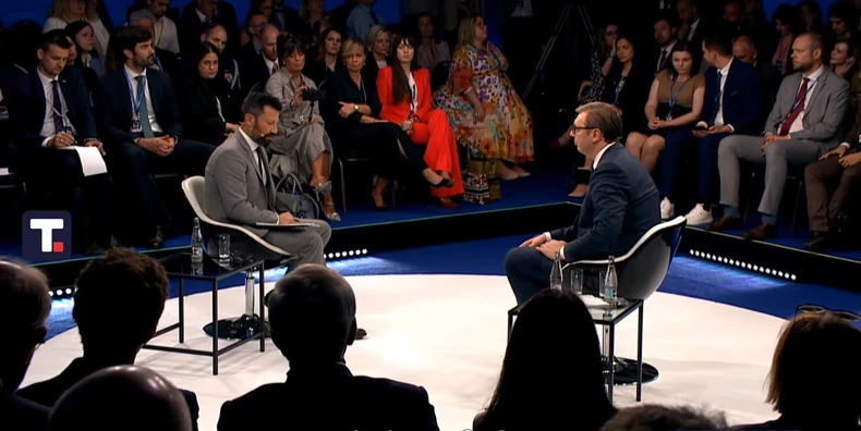 Predsednik Srbije je rekao moderatoru panela tokom pethodnog razgovora na temu o međunarodnim odnosima da treba da pokuša da obuje naše cipele i razume ono što se desilo Srbiji 1999. godine, kada je bombardovana naša zemlja.