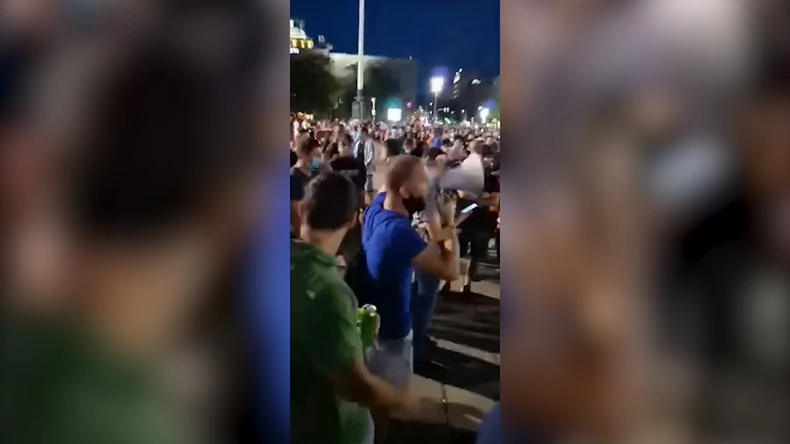 Predsednik zabranjenog ultradesničarskog pokreta "Obraz" Mladen Obradović okupio je ispred Skupštine grupu ekstremista.