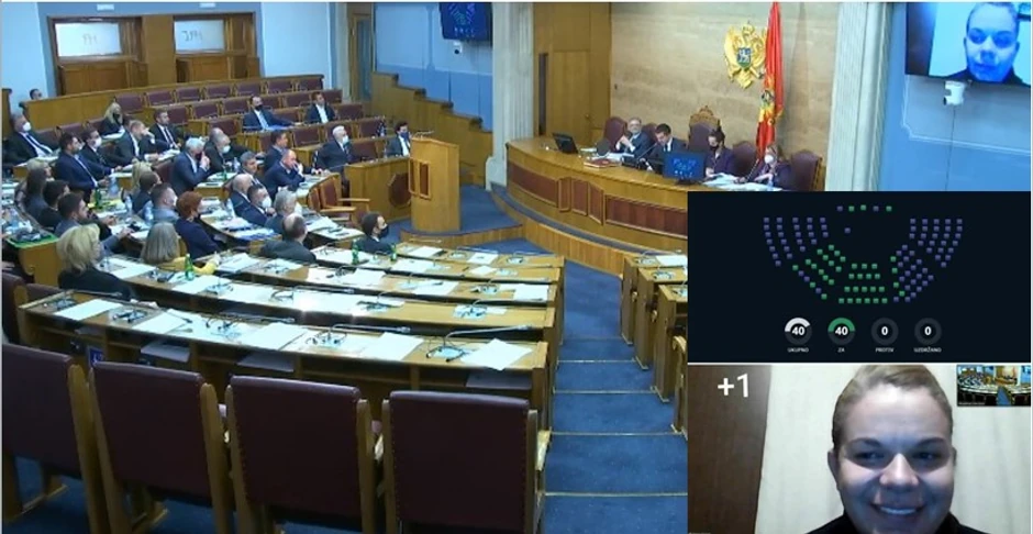 Izglasavanje Zakona proteklo je u sali koja je bila prazna u delu gde sede poslanici dosadašnje vlasti. Noćas su zakon izglasale srpske opcije, demokrate i koalicija "Crno na Bijelo" okupljena oko URA Dritana Abazovića. Učešće u radu na daljinu omogućeno je poslanici Maji Vukićević (DF).