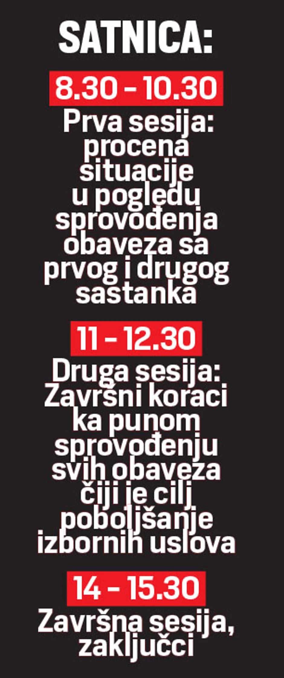 - Jedna će biti fokusirana na ocenjivanje napretka u dosadašnjem izvršavanju obaveza, a na drugoj sesiji će, kako je planirano, biti raspravljano o završnim koracima ka punoj implementaciji svih obaveza pred izbore - napominje naš sagovornik.