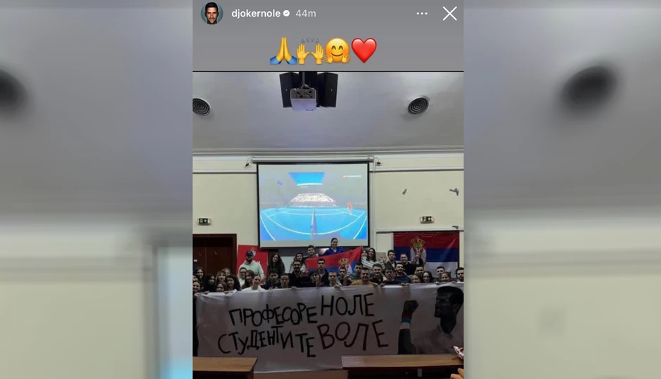 Srpski teniser Novak Đoković podelio je na svom instagram nalogu fotografiju na kojoj se vidi kako studenti tokom blokada gledaju njegov meč u Australiji.
