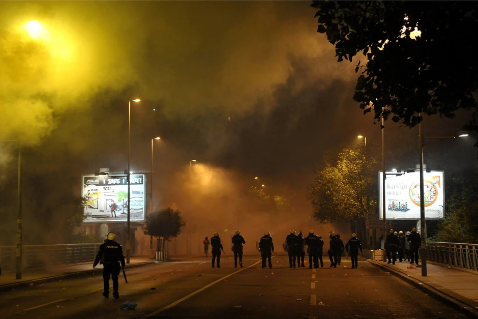 Ta koalicija optužila je i sekretara Veća za nacionalnu bezbednost i bivšeg direktora policije Veselina Veljovića da "stoji iza kriminalnih ljudi sa fantomakama koji su izazvali nerede, što je bila osnova za brutalnu reakciju policije".
