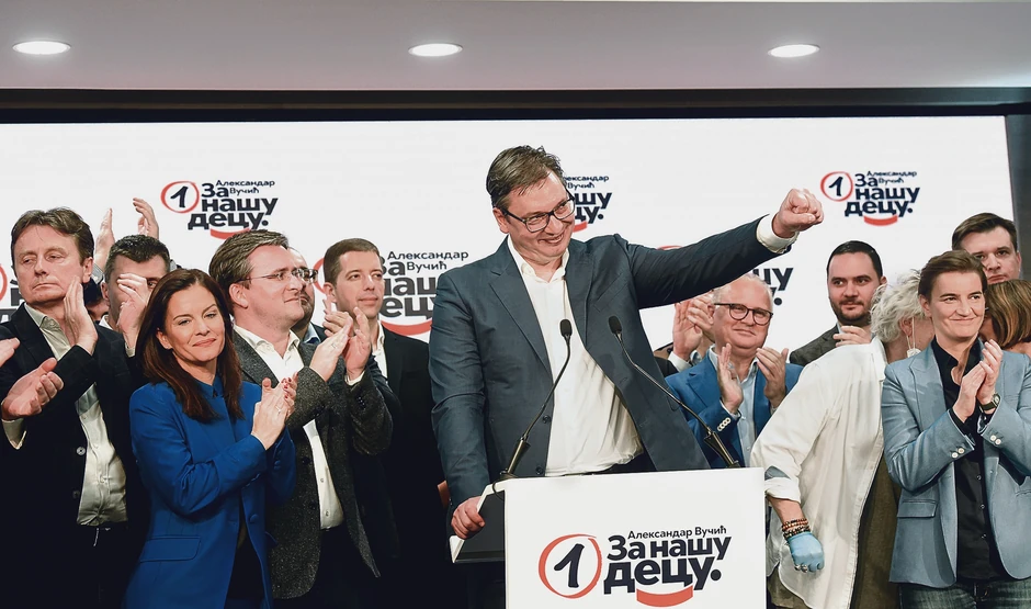 VIDEO: Trubači, kolo i ovacije za Vučića u štabu SNS