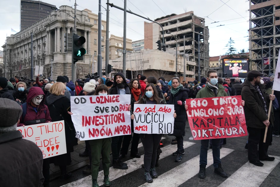 Glumica Ceca Bojković poručila je da nema stajanja i "marš Rio Tinto, marš svi koji devastiraju našu životnu sredinu i naše ljude", dok je Aleksandra Jovanović Ćuta najavio radikalizaciju protesta posle Božića "ukoliko do tada ne proteramo Rio Tinto iz Srbije".