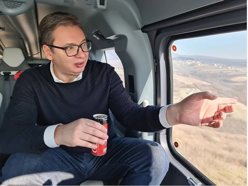 To je objavljeno na instagram profilu "budućnostsrbijeav", uz fotografiju predsednika iz helikoptera, na putu ka Kuršumliji, gde će se danas sastati sa Srbima sa KiM.
