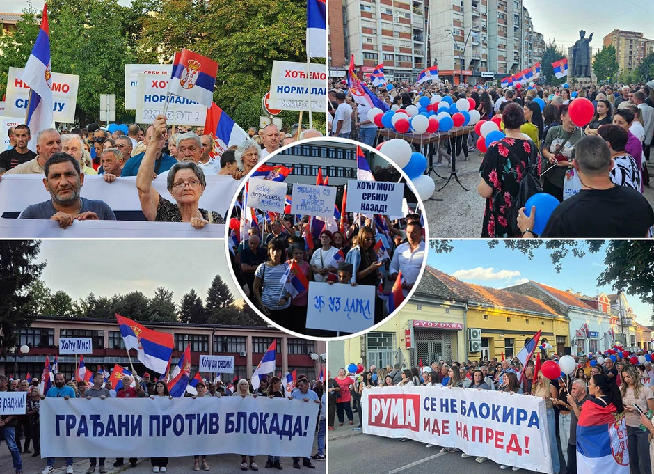 U velikom broju izašli su građani Rume koji su poručili da žele da prestanu blokade i da mogu slobodno da se kreću: