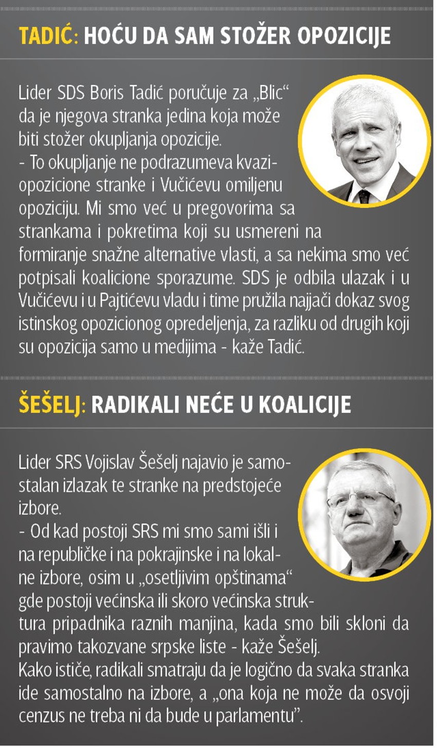 - Jasno je da nema stranaka s istim programima, ali bi one trebalo da budu bliske i s identičnim strateškim ciljevima. Okupljanje svih koji su protiv Vučića baš ne bi bilo logično - dodaje Živković.