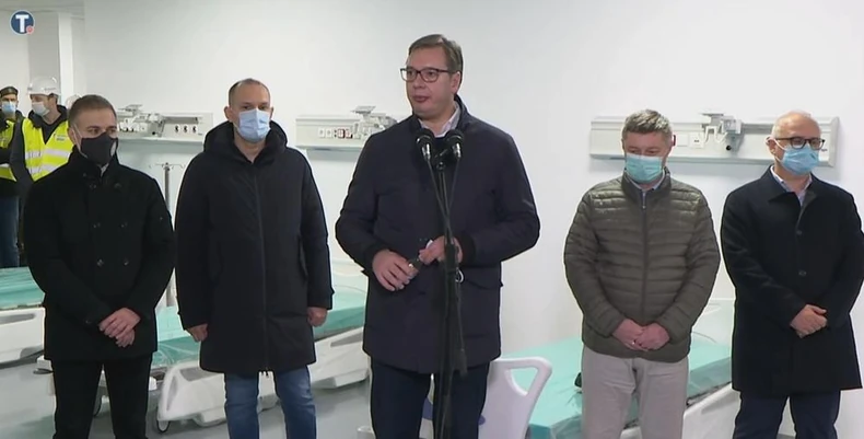 Predsednik Srbije kaže da će se u novoj kovid bolnici lečiti pacijenti sa srednje teškom i teškom kliničkom slikom. U bolnici u Zemunu radiće 1.500 lekara, a u Kruševcu 900.