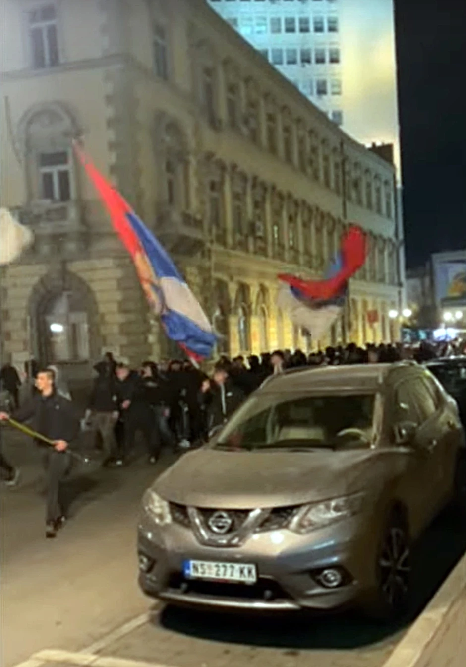 Uzvikivali su parole podrške predsedniku Rusije Vladimiru Putinu, Rusiji, klicali Krimu i Kosovu i uzvikivali šovinističke i nacionalističke parole.