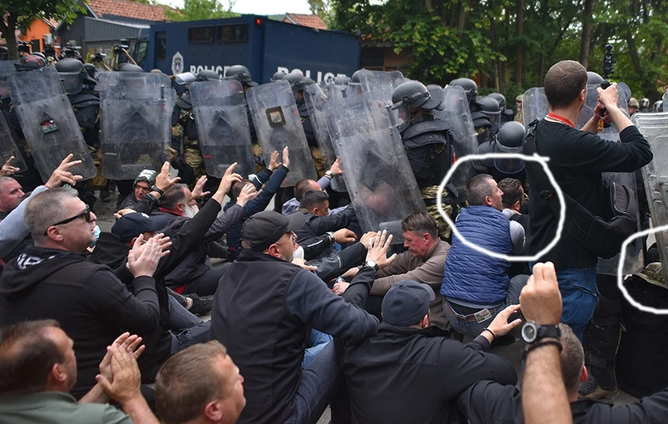 Video i foto materijal koji je ekipa "Kim radija" snimila u ponedeljak 29. maja u popodnevnim satima neposredno pre izbijanja nereda u Zvečanu, pokazuje da su Radoš Petrović i Dušan Obrenović "nestali" iza kordona KFOR-a pre incidenta pa je, kako navode, jasno da u njemu nisu učestvovali, niti su mogli da napadnu bilo koga, pošto su prethodno - privedeni.