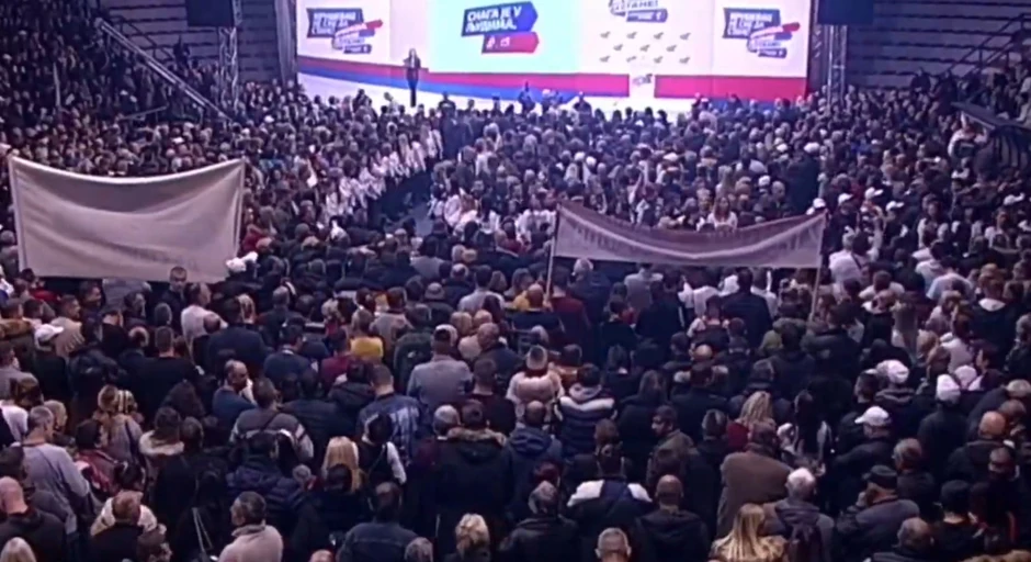 U sportskoj hali u Kruševcu okupio se veliki broj građana, a mnogi koji nisu mogli da uđu ostali su ispred.