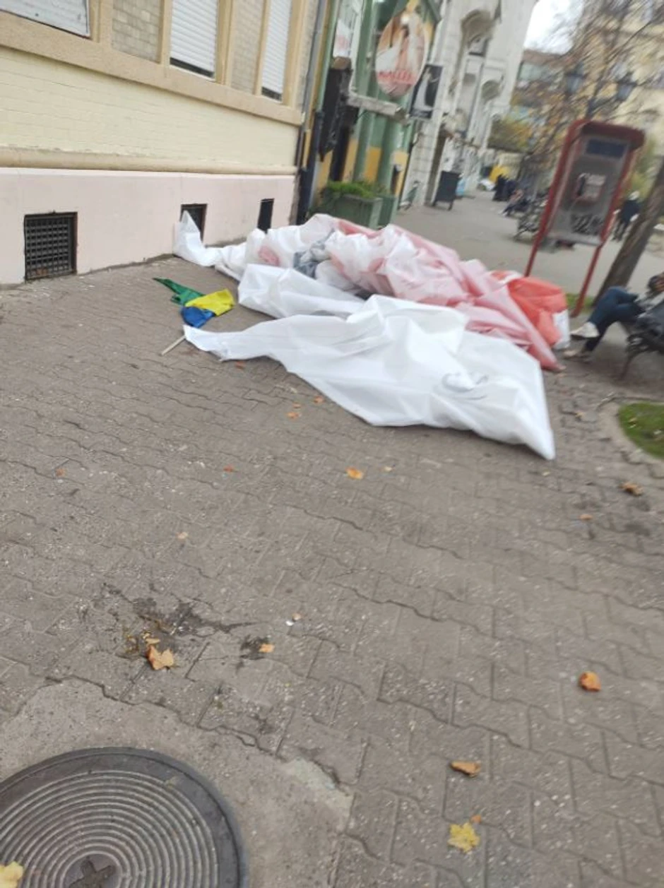 Oni su se, prenosi portal 021.rs, popeli na terasu susedne zgrade i odatle su otkačili pano sa krova, koji je potom pao na zemlju.