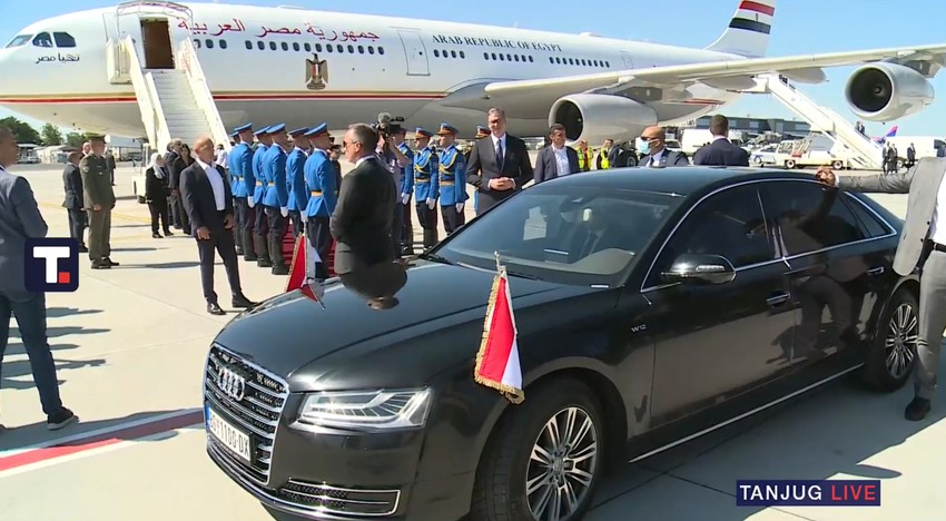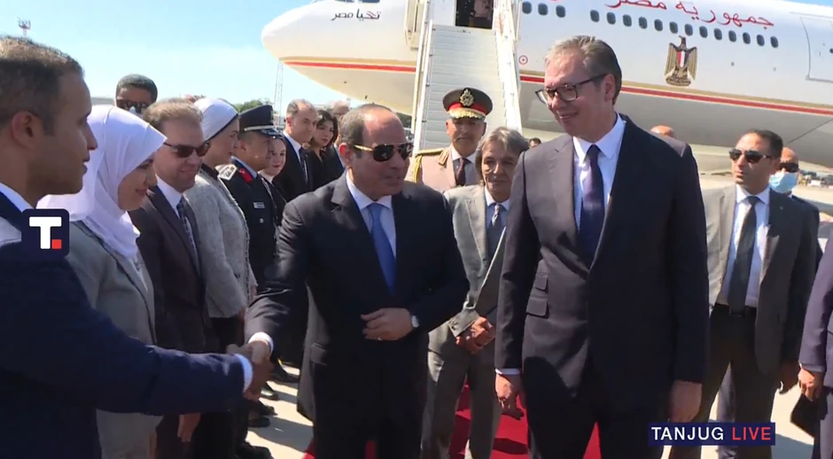 Predsednik Srbije Aleksandar Vučić dočekao je na beogradskom aerodromu "Nikola Tesla" predsednika Arapske Republike Egipat Abdela Fataha el Sisija.
