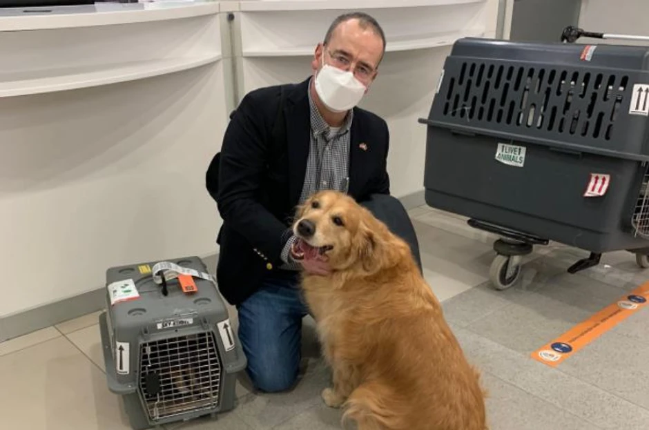 Ginkel se danas na Tviteru oprostio od Godfrija, uz njegove dve fotografije, sa aerodroma gde je čekao let sa svojim ljubimcima i još jednom iz aviona.