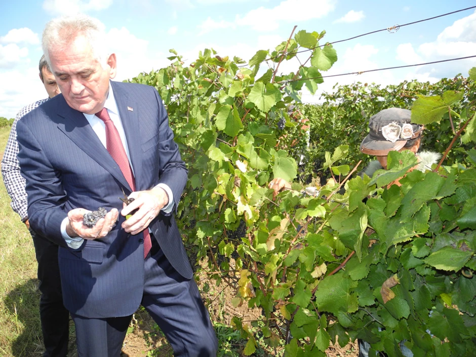"Prvi put sam prošle godine proizveo vino, od vinskih sorti Otonel i Šardone", otkrio je novinarima predsednik Srbije Tomislav Nikolić.