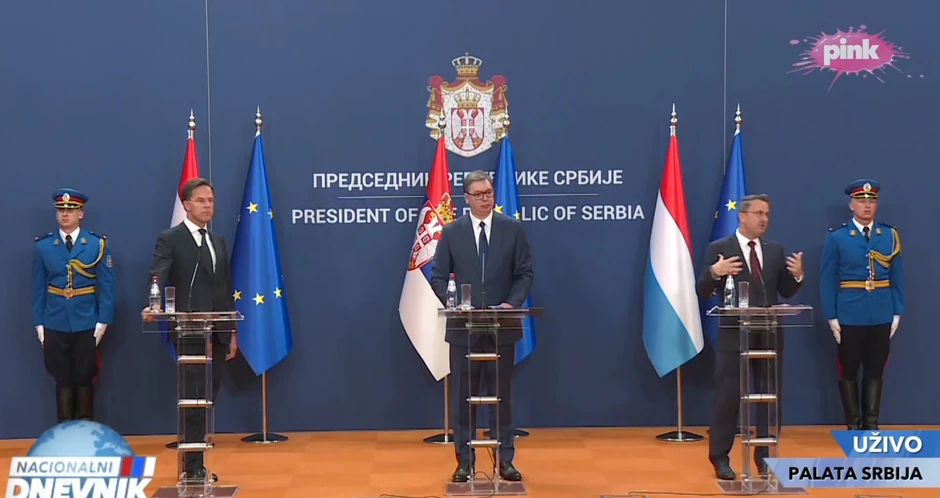 Predsednik Srbije Aleksandar Vučić, koji je večeras ugostio predsednike Vlada Holandije Marka Rutea i Velikog Vojvodstva Luksemburga Gzavijera Betela, obratio se medijima nakon sastanka.