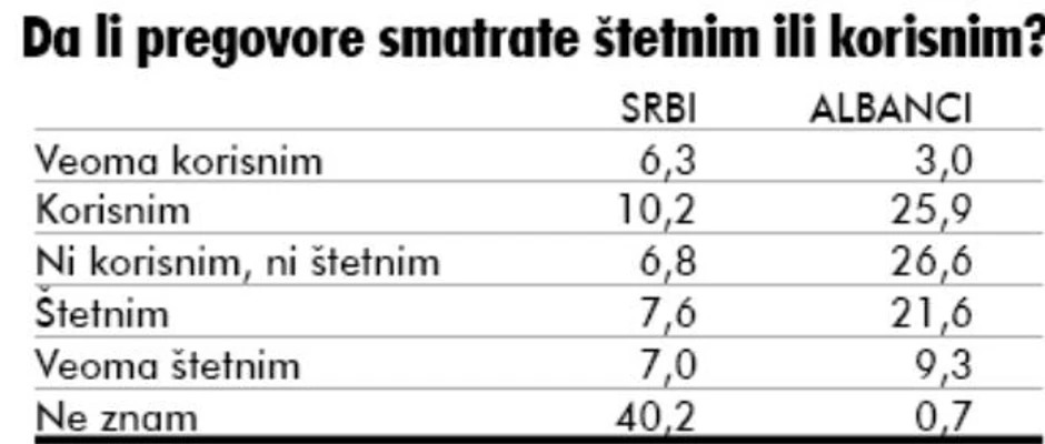 PRIŠTINA - Među Srbima i Albancima na Kosovu vlada potpuna konfuzija oko toga da li im pregovori Prištine i Beograda idu u prilog ili ne.