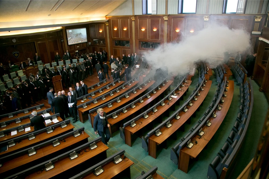 Kurti i Hadžiju su dvoje od ukupno 13 poslanika opozicije koji su po nalogu tužioca privedeni zbog bacanja suzavca u skupštinsku salu i sukoba sa policijom koja je obezbeđivala zgradu parlamenta u Prištini.