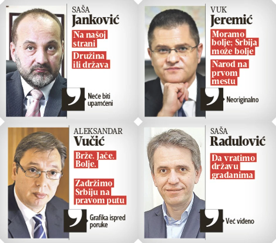 Cvijetin Milivojević, direktor agencije Pragma, kaže za "Blic" da nije važan umetnički momenat kada je reč o sloganu, već da se njihov uspeh meri kroz izlaznost, procenat osvojenih glasova i kroz to hoće li ostati upamćeni. Milivojević je analizirao sve slogane.