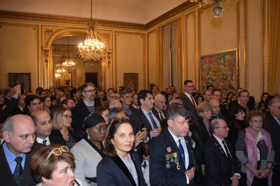 Uz predstavnike diplomatskog i vojnog kora, prijemu su prisustvovali i senatorka i predsednica Grupe prijateljstva Francuska-Balkan u Senatu Marta de Sidrak, senator Olivije Kadik, poslanica i članica Spoljnopolitičkog odbora Nacionalne skupštine Liliana Tangi, direktor VINCI Airoports Nikola Notber, zamenik urednika Le Figaro Magazine Žan Kristof Buison, pisac i novinar Patrik Beson, glumac Žan Mark Bar, unuk čuvenog francuskog generala Tranijea iz Prvog svetskog rata Pjer Tranije, penzionisani pukovnik i pripadnik specijalnih snaga Francuske koji je odlikovan ordenom Svetog Save Žak Ogar, predsednici opština 15-og pariskog arondismana Filip Gujon i Bobinjija Stefan de Paoli, predsednik MEDEF-a za Balkan i Tursku Šarl Paradi, predstavnici departmana Val Doaz, specijalni savetnik generalne sekretarke Frankofonije, predstavnici Ke Dorseja, francuskog MUP-a, lokalnih institucija, bivši ambasador Republike Francuske u Srbiji Ksavije Denio i brojni ugledni predstavnici srpske dijaspore.