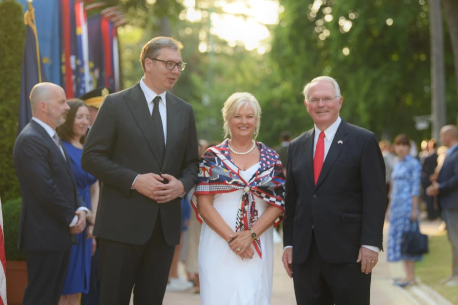 Proslavi Dana nezavisnosti SAD prisustvuju predsednik Srbije Aleksandar Vučić, premijerka Ana Brnabić, predsednik skupštine Ivica Dačić, patrijarh Porfirije.