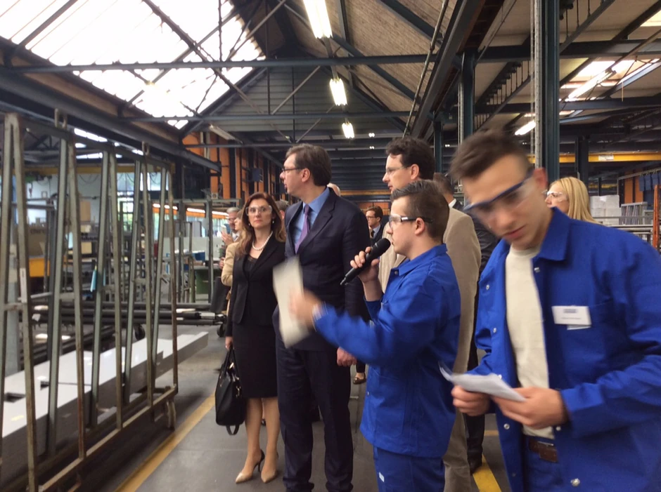 Predsednik Vlade Srbije Aleksandar Vučić obišao je danas u mestu Hedingen, pored Ciriha, kompaniju ''Ernst Švajcer'', koja uživa veliki ugled u primeni stručnog usavršavanja kroz sistem dualnog obrazovanja, saopštila je vladina Kancelarija za saradnju s medijima.