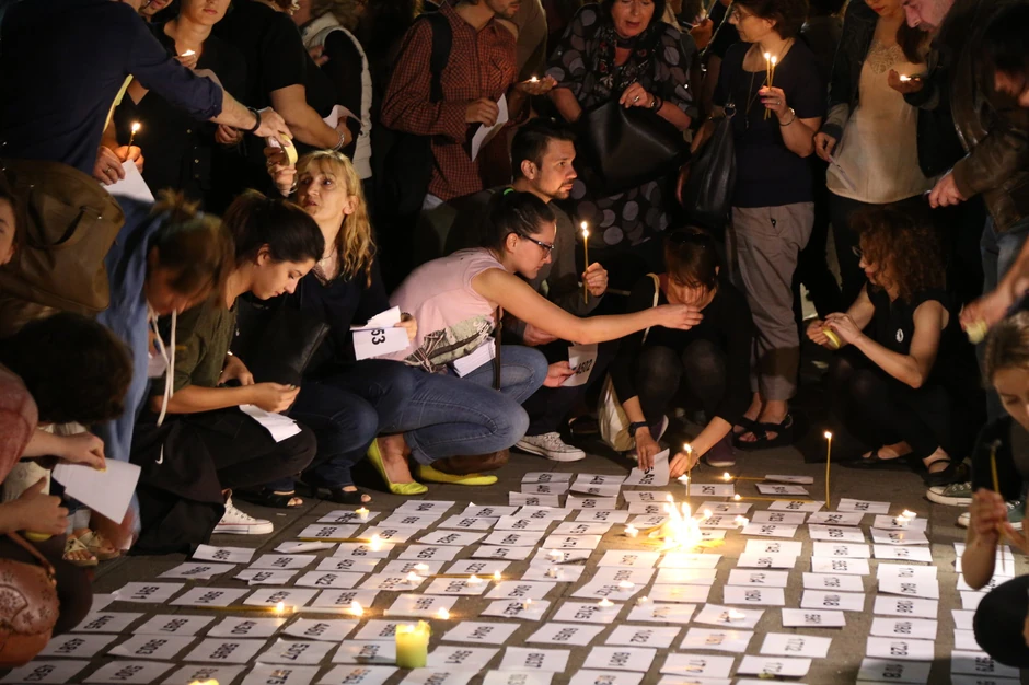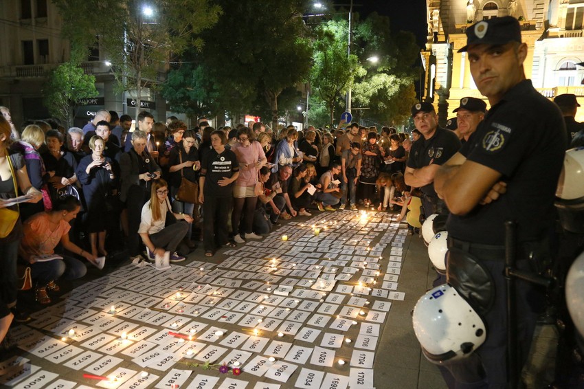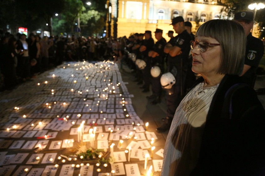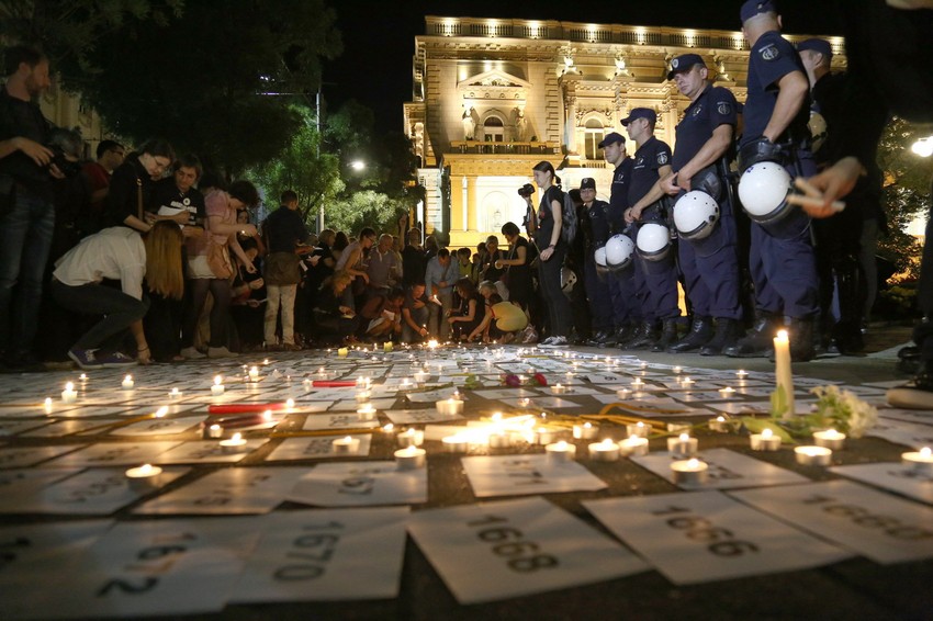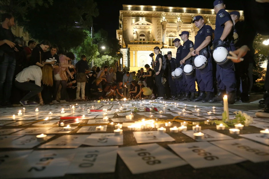 Sugrađani su polako spuštali brojeve preuzete u okviru akcije “Sedam hiljada” na ulicu, a potom na te brojeve polagali sveće. Ceo prostor oko Skupštine obezbeđivala je policija pod punom opremom.