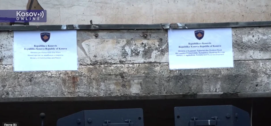 Na objektu u Leposaviću gde je do petka radio Privremeni organ opštine Leposavić, Institut za srpsku kulturu, Saobraćajna škola i gde se nalaze i kancelarije mnogobrojnih organizacija danas su privremeno postavljena dva papira na kojima je napisano Ministarstvo za zajednice i povratak i Ministarstvo poljoprivrede šumarstva i ruralnog razvoja.