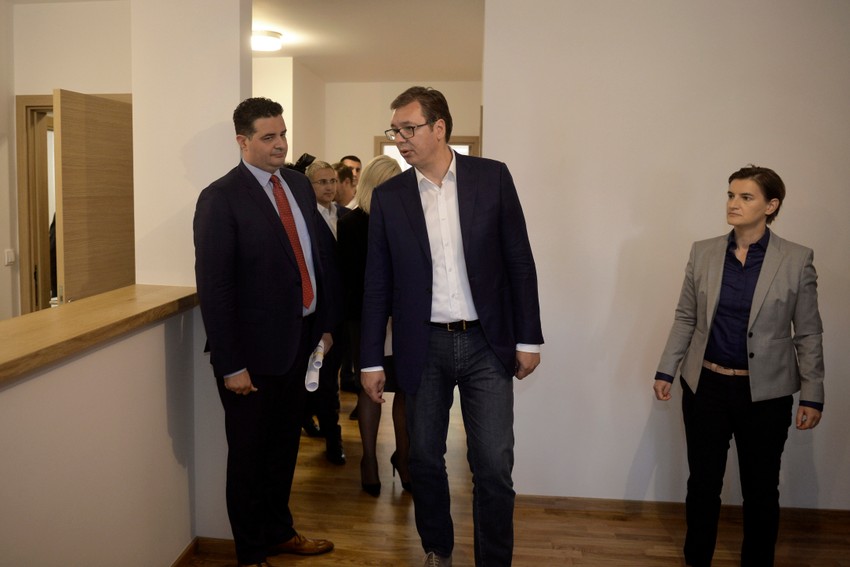 Predsednik Srbije Aleksandar Vučić i premijerka Ana Brnabić obišli su danas ogledni stan iz državnog projekta stanogradnje za pripadnike snaga bezbednosti u naselju "Zemunske kapije".