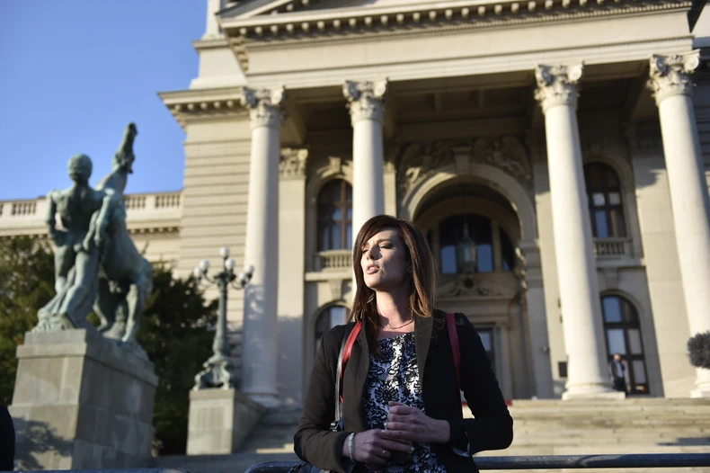 Tridesetšestogodišnja profesorka srpskog jezika i književnosti Ena Nedić večeras je zapalila sve svoje diplome ispred Doma Narodne skupštine.