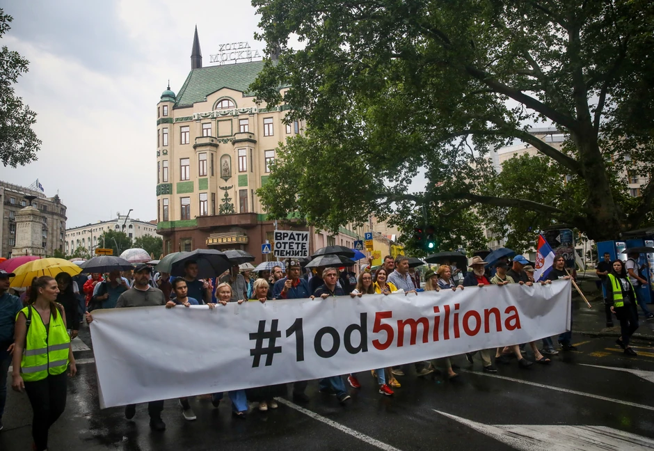 Okupljanje građana u okviru protesta "1 od 5 miliona" počelo je oko 19 časova kod Terazijske česme.