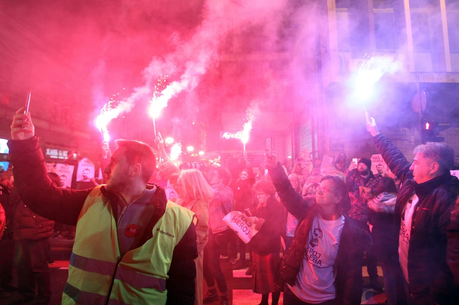 Nakon njegovog obraćanja, organizatori protesta najavili su šetnju kao “pobednički marš”, a kolona se kretala preko Trga republike, Makedonske i Svetogorske ka RTS-u.