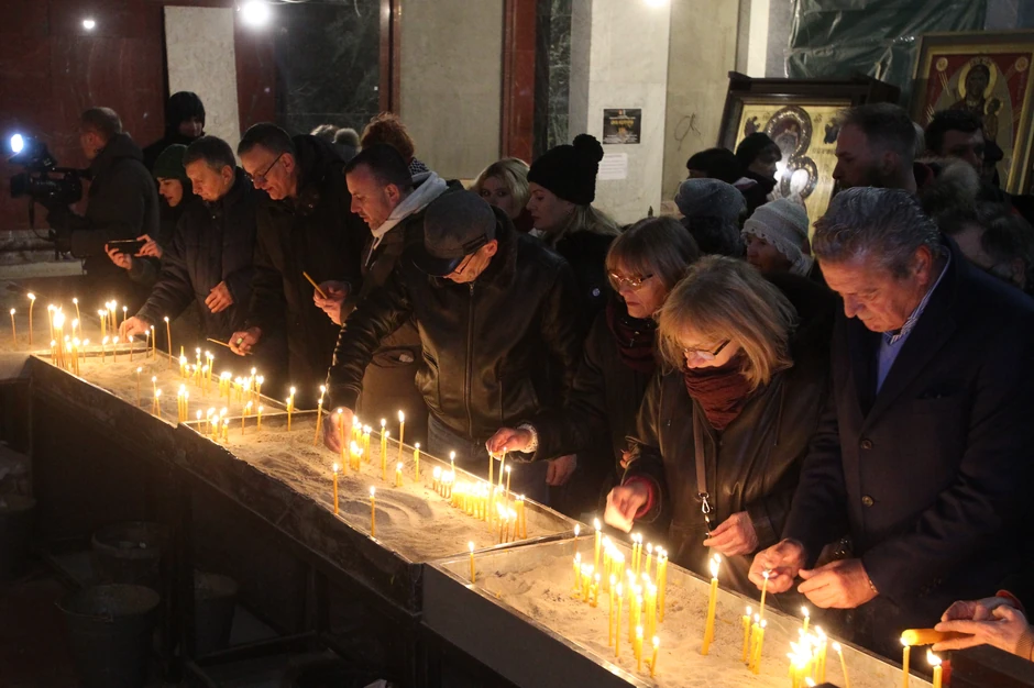 Po dolasku pred Hram, učesnici protesta zapalili su sveće u kripti Hrama i oko njega.