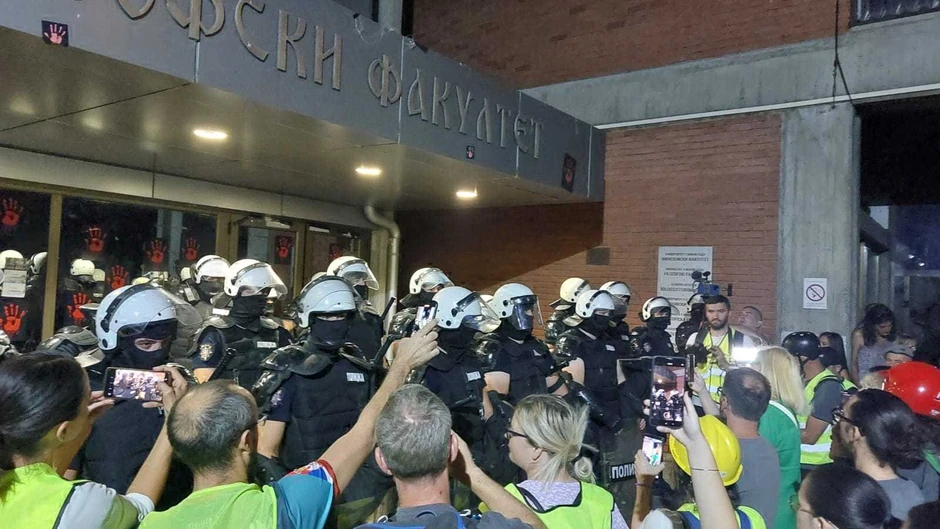 - Ovo je treći put da smo probali mirno da uđemo na fakultet. Samo mi profesori i da razgovaramo sa dekanom. Dobili smo obaveštenje da nas danas prepodne nisu pustili zato što nije bio portir u zgradi da nas identifikuje, a sada smo dobili odgovor od dekana da se opet plaši za svoju bezbednost. Zahtevamo da se policija udalji iz zgrade fakulteta i da dekan podnese ostavku - saopštili su profesori ispred fakulteta.