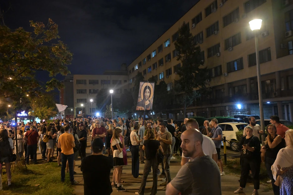 Kako je izvestio RTS, tokom šetnje okupljenih na protestu, nekoliko učesnika protesta napalo je snimatelja RTS-a, koji je snimao protestnu šetnju.