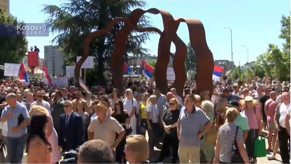 Srbi sa severa Kosova protestovali su mirno u Severnoj Mitrovici zbog najava Prištine o otvaranju mosta na Ibru između severne i južne Mitrovice.