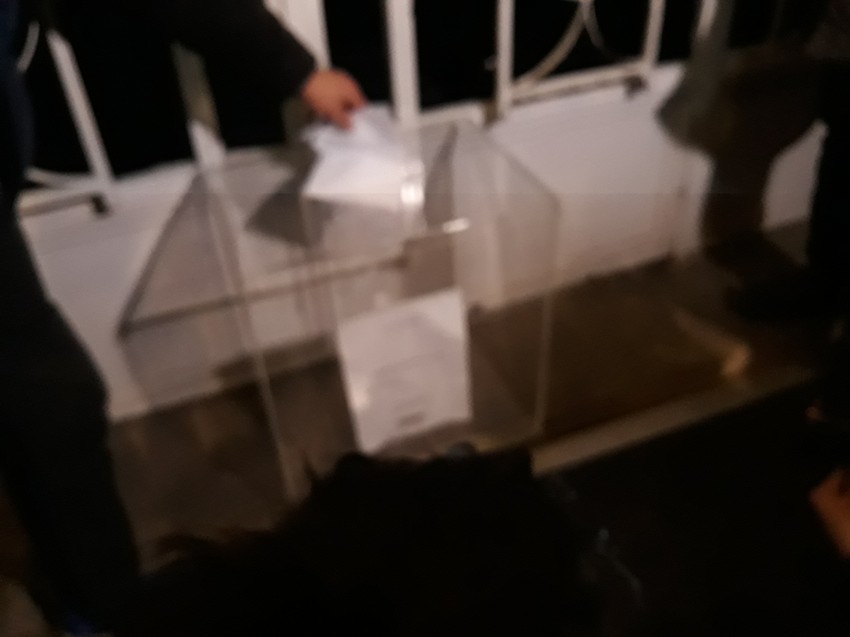 Pred sedištem Republičke izborne komisije postavljena je kutija nalik glasačkoj sa ispisanim "Bojkot" na njoj, čime je večerašnje okupljanje završeno.