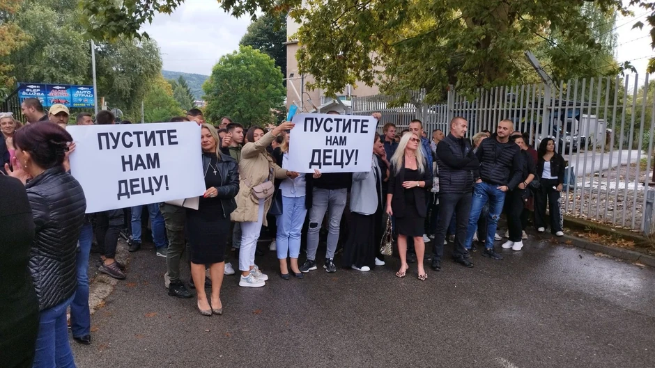 Okupljeni svoje nezadovoljstvo iskazuju duvanjem u pištaljke, uz povike "Pustite nam decu!" a istakli su i transparente "Policija Kurtilenda" i "Da li je EU zabrinuta?" ž