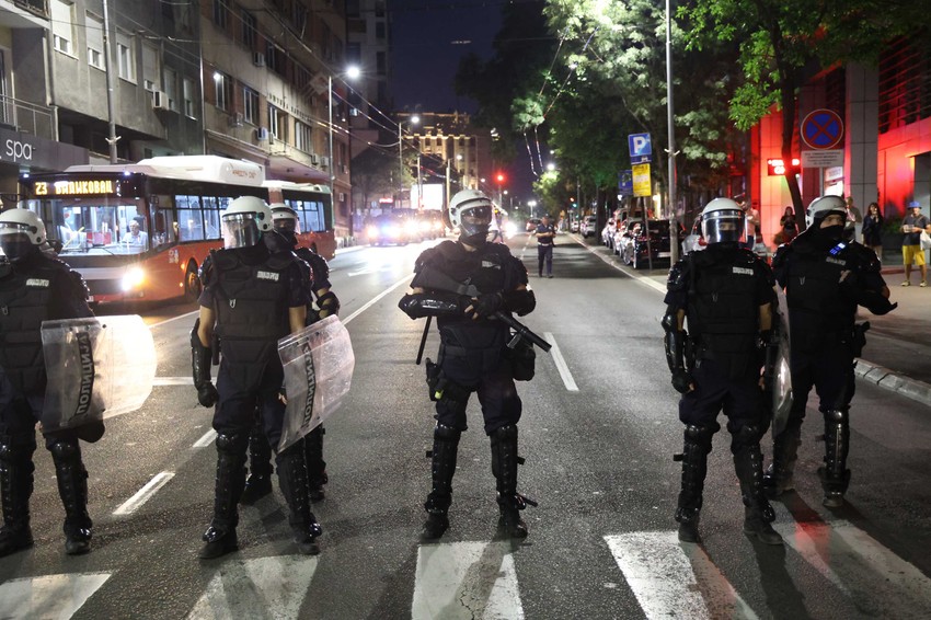 Kordoni policije su ih sprečili da priđu bliže zgradi RTS-a. Kolona demonstranata je skrenula, kako bi izbegla prilaz šatorima ispred Skupštine Srbije.
