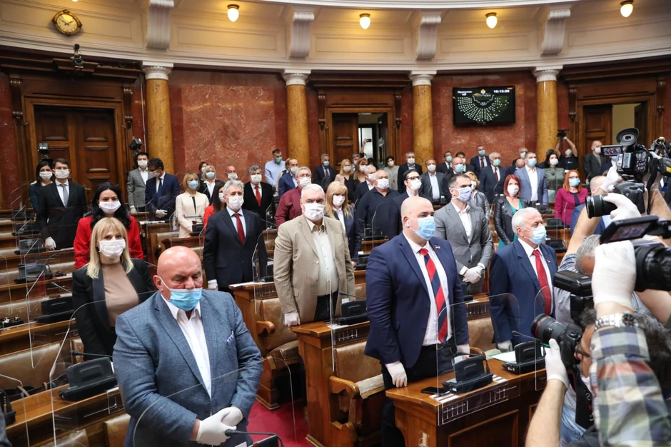 Sednica parlamenta biće prva od uvođenja vanrednog stanja, a zbog okolnosti u kojima se održava, preduzete su odgovarajuće mere. Poslanici sede na bezbednoj udaljenosti jedni od drugih i nose maske, vizire i rukavice.
