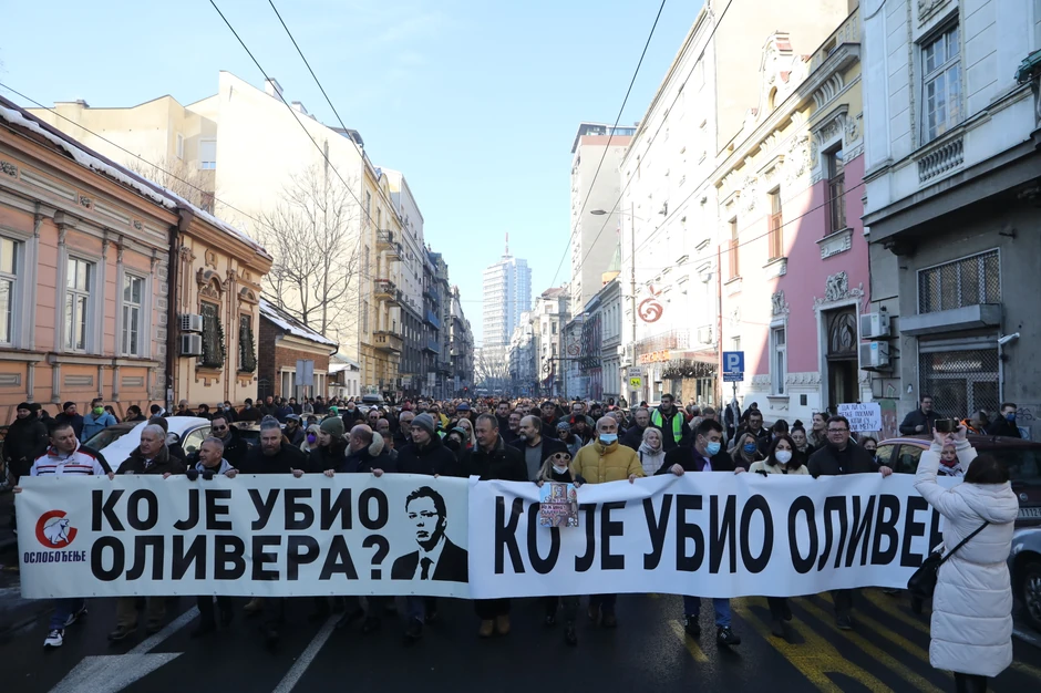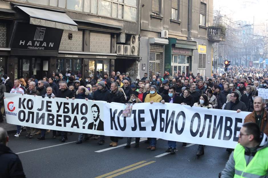 Na protestnu šetnju nazvanu "Ko je ubio Olivera" od predsedništva gde su se okupili učesnici, pozvao je opozicioni Pokret za preokret, a prisutni su bili lider S SP Dragan Đilas, potpredsednica S SP Marinika Tepić, predsednik Narodne stranke Vuk Jeremić, predsednik PSG Pavle Grbović, predsednik Demokratske stranke Lutovac, Janko Veselinović.