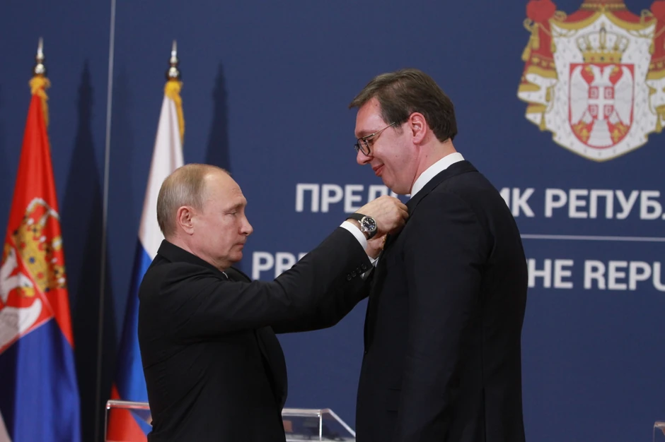 - Gospodine predsedniče, želim vam blagostanje, dobro zdravlje i mnogo uspeha na međunarodnom planu - rekao je ruski predsednik pošto je srpskom kolegi predao orden.